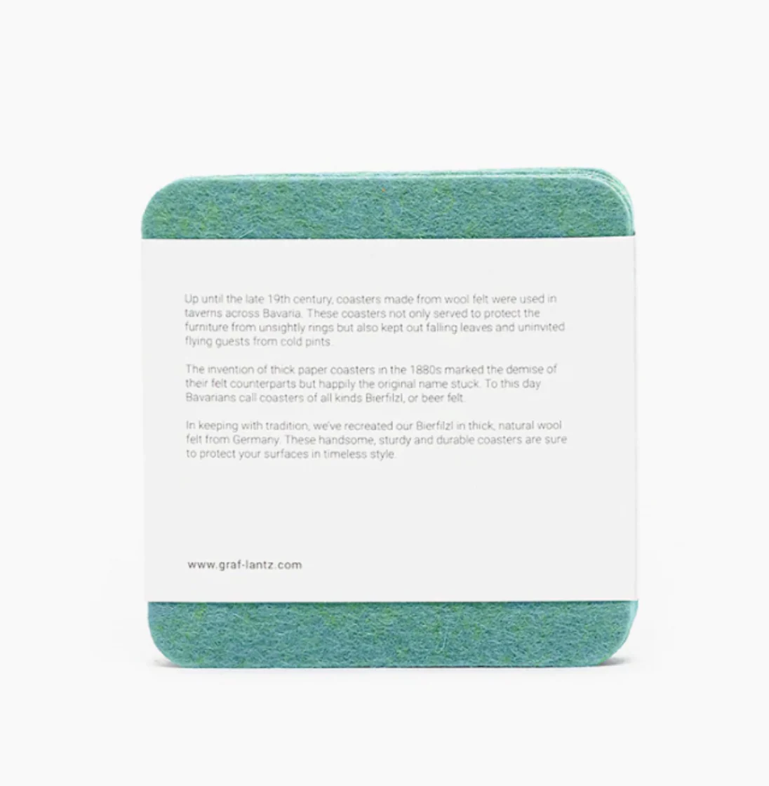 Graf Lantz traditional Bierfilzl are the highest quality German merino wool felt coasters on the market today. Their clean and minimal execution offers an unexpected textural and refined modern heritage element to any home decor. Our set includes 4 hand-cut heavy duty 5mm thick wool felt coasters to provide extra surface protection from the naturally water resistant material.