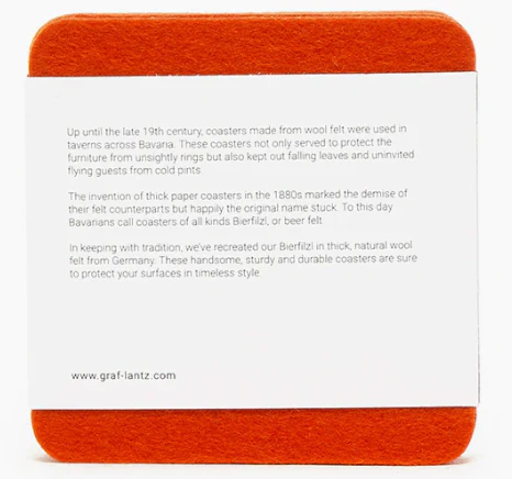 Graf Lantz Bierfilzl Square Felt Coaster – Orange – 4pk